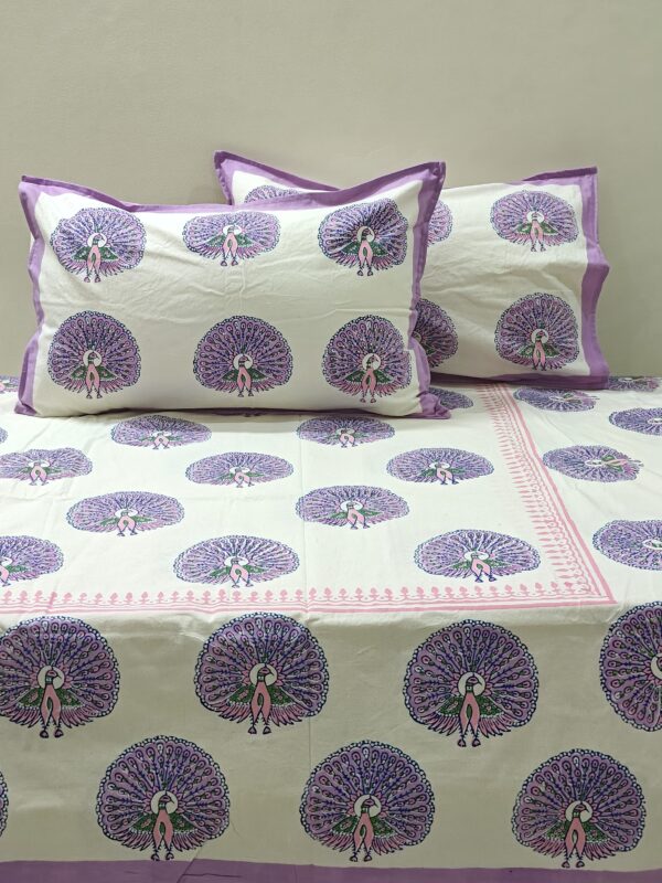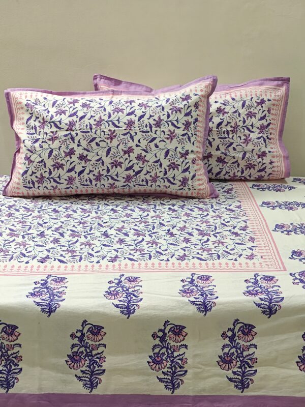 Elegant Pink & Purple Cotton Bedsheet Hand Block Printed with Pillow Covers, Indian Bedding, King Size Bed Sheet, Fitted Sheets, Gift for Mom