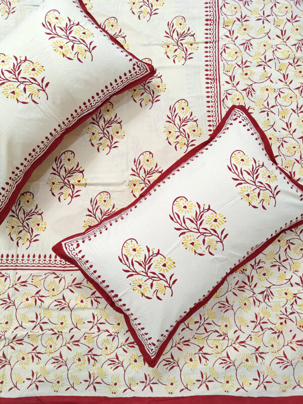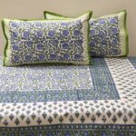 $55.00 – $65.00Price range: $55.00 through $65.00Bedsheet Hand Block Printed Cotton Bedsheet With 2 Pillow Covers/Bedsheet With Pillow Covers/ 17”X 28” Reversible Covers, For your home