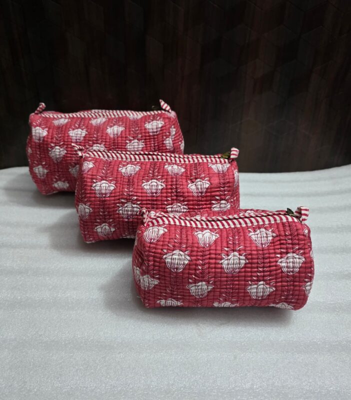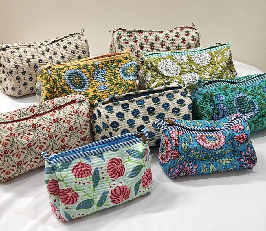 Assorted Large Cotton Quilted Hand Block Printed Wash Bag | Ideal Gift | Handmade | Toiletry Bag | Cosmetic Bag Block Print Travel Accessory Holiday